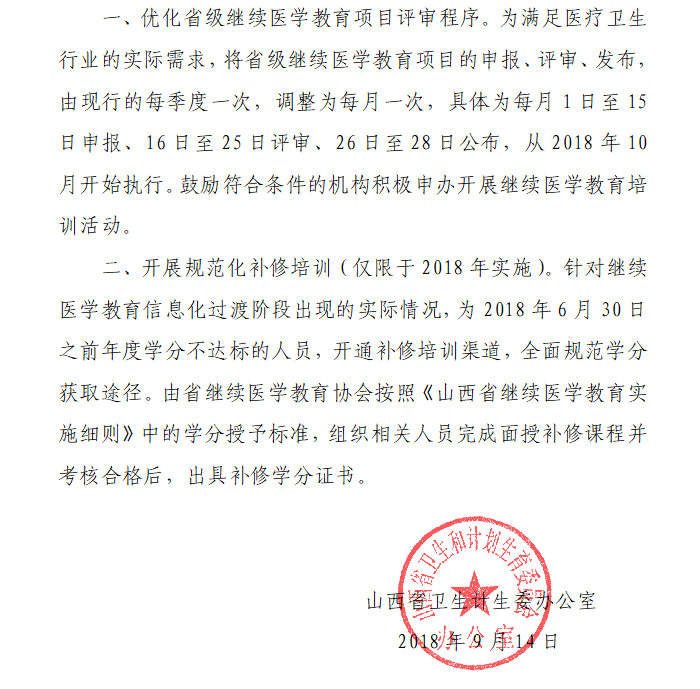山西省衛(wèi)生計生委辦公室關于進一步做好繼續(xù)醫(yī)學教育相關工作的通知