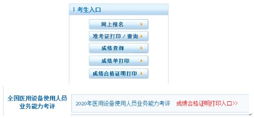 凡參加2020年全國醫(yī)用設(shè)備使用人員業(yè)務(wù)能力考評成績合格(黑龍江考區(qū),>=60分)的考生,可以登錄中國衛(wèi)生人才網(wǎng),網(wǎng)址:https://www.21wecan.com/,點擊“成績合格證明打印”——“2020年醫(yī)用設(shè)備使用人員業(yè)務(wù)能力考評成績合格證明打印入口”,考生自行注冊、查詢、打印合格證明。