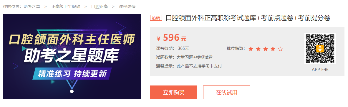醫(yī)學教育網(wǎng)題庫軟件提供免費試用,同時提供豐富的考試復習資料,優(yōu)惠價格:596元/套!各位考生不要錯過!