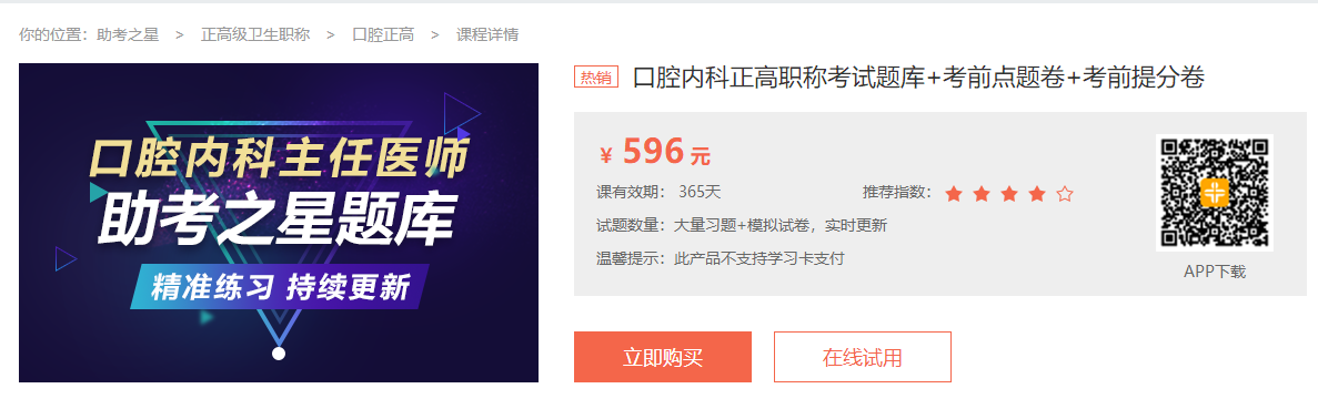 醫(yī)學(xué)教育網(wǎng)題庫軟件提供免費(fèi)試用,同時(shí)提供豐富的考試復(fù)習(xí)資料,優(yōu)惠價(jià)格:596元/套!各位考生不要錯(cuò)過!