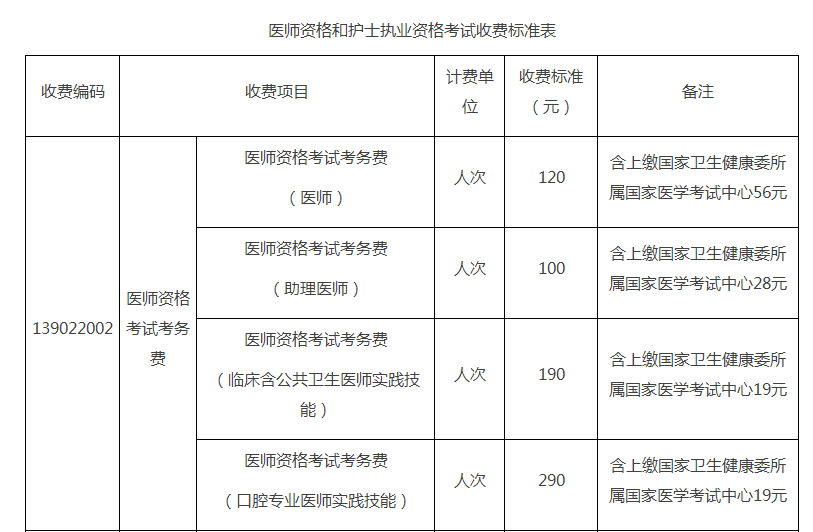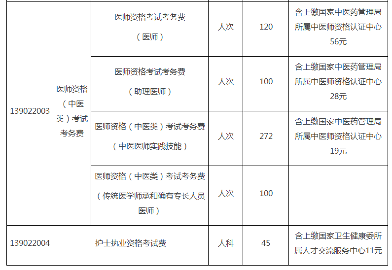 附件:醫(yī)師資格和護士執(zhí)業(yè)資格考試收費標準表(見上截圖)