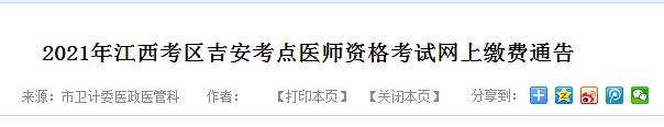 2021年江西考區(qū)吉安考點(diǎn)醫(yī)師資格考試費(fèi)全部實(shí)行網(wǎng)上支付,不提供其他繳費(fèi)途徑。為便于考生網(wǎng)上及時(shí)繳費(fèi),現(xiàn)將有關(guān)事項(xiàng)通告如下: