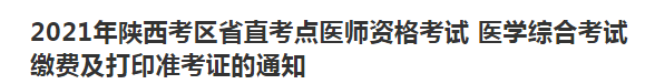 為切實(shí)做好2021年醫(yī)師資格考試醫(yī)學(xué)綜合考試陜西考區(qū)省直考點(diǎn)繳費(fèi)及準(zhǔn)考證打印工作,現(xiàn)將相關(guān)事宜通知如下: