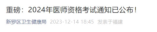 福建新羅區(qū)發(fā)布2024年醫(yī)師資格考試報(bào)名及考試時(shí)間安排公告,公告內(nèi)容包含2024年醫(yī)師資格考試報(bào)名時(shí)間、考試時(shí)間安排,請(qǐng)相關(guān)考生及時(shí)查看。