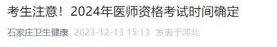 河北石家莊2024醫(yī)師資格考生請(qǐng)注意!2024醫(yī)師考試時(shí)間確定!請(qǐng)相關(guān)考生及時(shí)查看官方發(fā)布的通知文件,做好報(bào)名準(zhǔn)備!