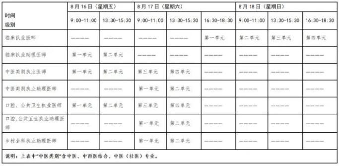 考試實行計算機化考試,軍隊現(xiàn)役人員加試軍事醫(yī)學、院前急救崗位和兒科專業(yè)加試相應內(nèi)容。中醫(yī)類別蒙醫(yī)、藏醫(yī)、維醫(yī)、哈薩克醫(yī)專業(yè)實行紙筆考試。統(tǒng)一考試時間如下: