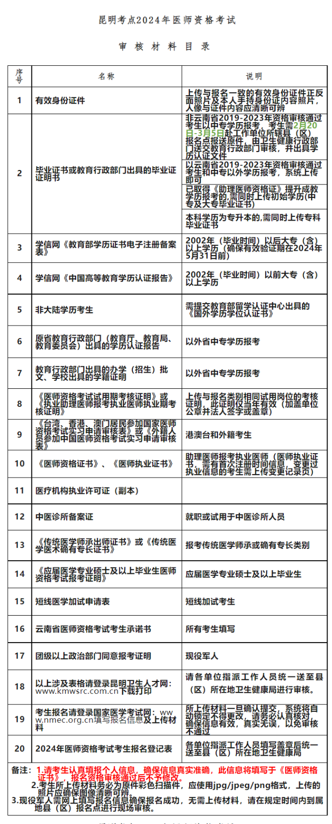 8.考生在上傳材料前請仔細(xì)閱讀《昆明考點(diǎn)2024年醫(yī)師資格考試審核材料目錄》(見附件)對照自身情況上傳相關(guān)材料。
