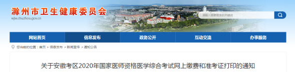 2020年滁州市國(guó)家執(zhí)業(yè)醫(yī)師資格醫(yī)學(xué)綜合考試(口腔類別)繳費(fèi)通知