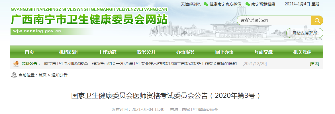 (四)醫(yī)師資格考試報名資格有關(guān)規(guī)定及考試相關(guān)信息,各考區(qū)、考點(diǎn)和考生可登錄國家衛(wèi)生健康委和國家中醫(yī)藥管理局網(wǎng)站查詢,或者登錄國家醫(yī)學(xué)考試網(wǎng)和中國中醫(yī)藥考試認(rèn)證網(wǎng)查詢。國家衛(wèi)生健康委網(wǎng)址:
