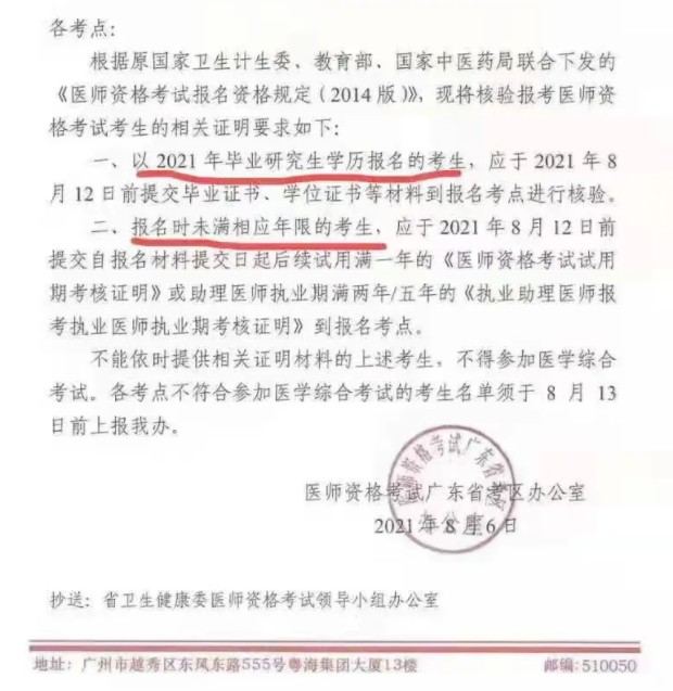 2021年廣東考區(qū)口腔執(zhí)業(yè)醫(yī)師筆試考生相關(guān)證明補(bǔ)交通知!