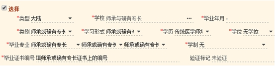 7、師承和確有專(zhuān)長(zhǎng)教育經(jīng)歷一欄,可參照下圖填寫(xiě)