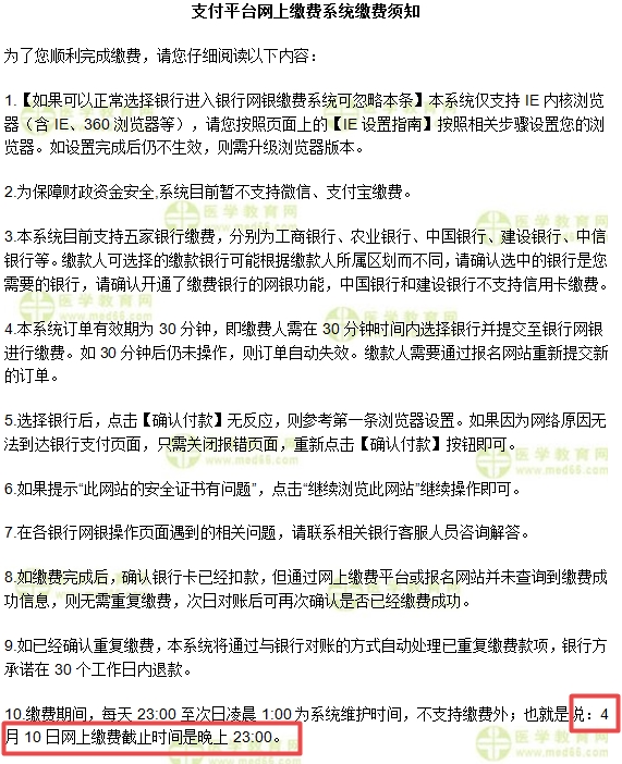 根據(jù)山東衛(wèi)健委官方通知,山東考區(qū)將于4月1日-4月10日(截至10日晚上23:00)開通實踐技能考試網(wǎng)上繳費。請考生在上述時間內(nèi)上網(wǎng)完成繳費,逾期將不予補繳。