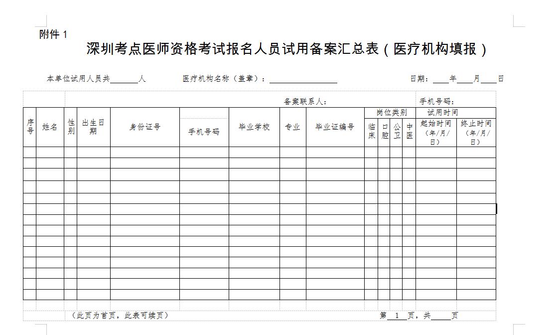 深圳考點醫(yī)師資格考試報名人員試用備案匯總表(醫(yī)療機構(gòu)填報)