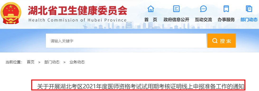 湖北衛(wèi)生人才網(wǎng)在2021年醫(yī)師資格考試報名前,發(fā)布了“關于開展湖北考區(qū)2021年度醫(yī)師資格考試試用期考核證明線上申報準備工作的通知”,在第三條提到試用期考核網(wǎng)上填報工作開始后,考生需提供試用機構出具的試用期滿一年并考核合格的證明,單位需考生提交信息進行審核及確認。