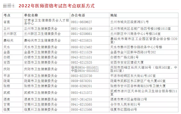 4.甘肅各考點2022年醫(yī)師資格考試報名審核考點聯(lián)系電話
