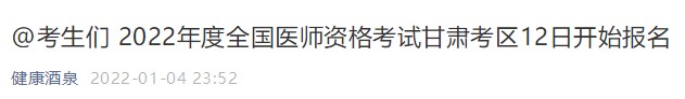 甘肅酒泉考點2022年全國醫(yī)師資格考試有關(guān)工作安排