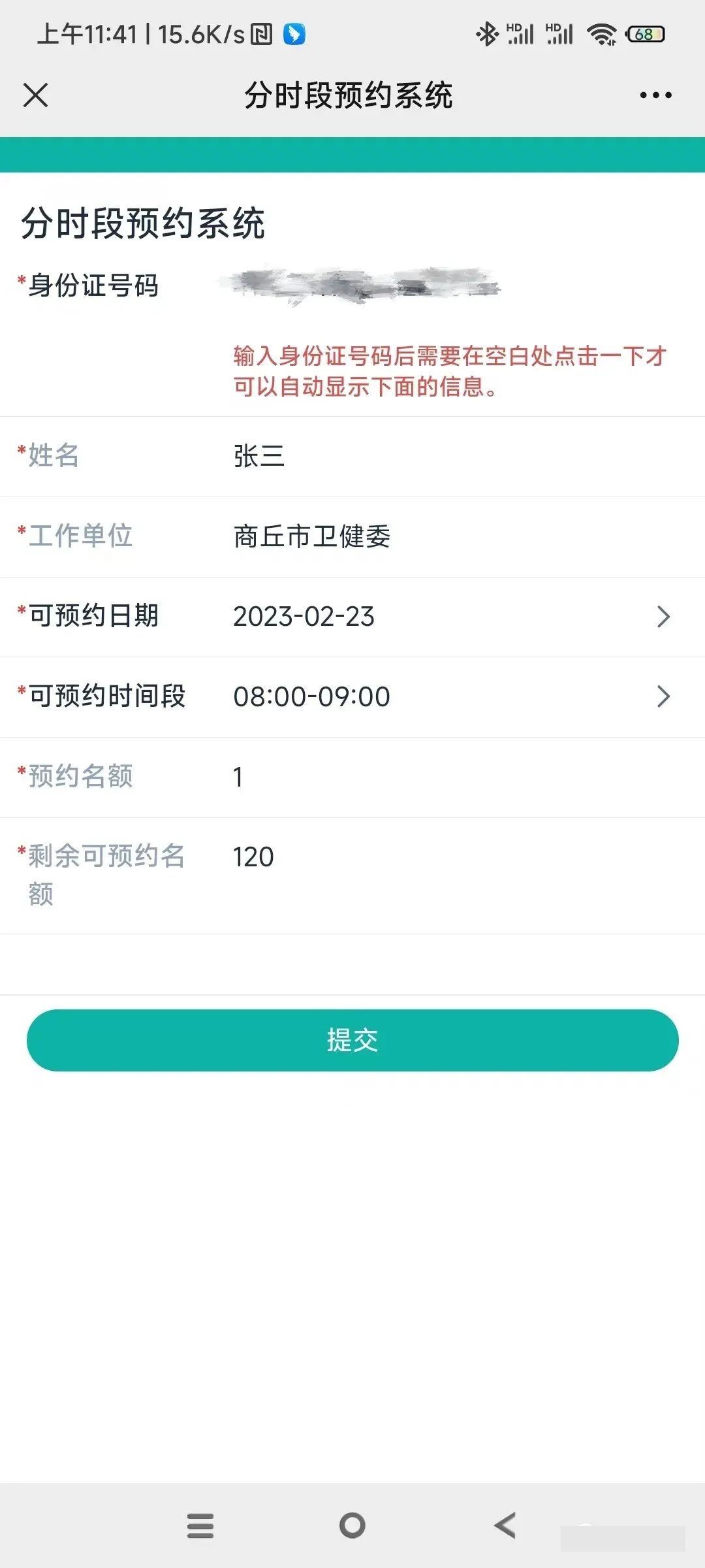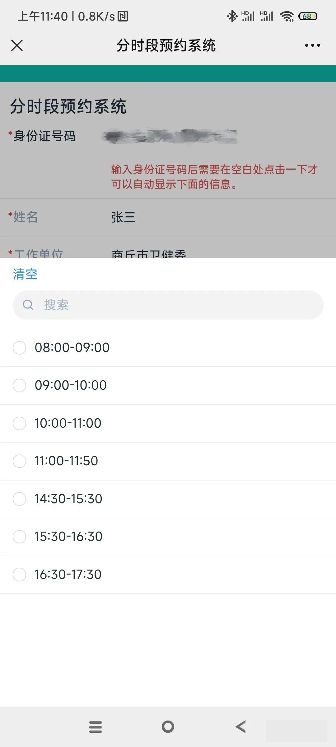 選擇時間段(如下圖)圖中時間段僅為測試時顯示,不作為正常預(yù)約的時間段。