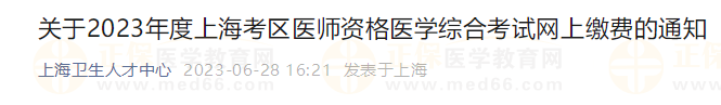 關(guān)于2023年度上??紖^(qū)醫(yī)師資格醫(yī)學(xué)綜合考試網(wǎng)上繳費的通知