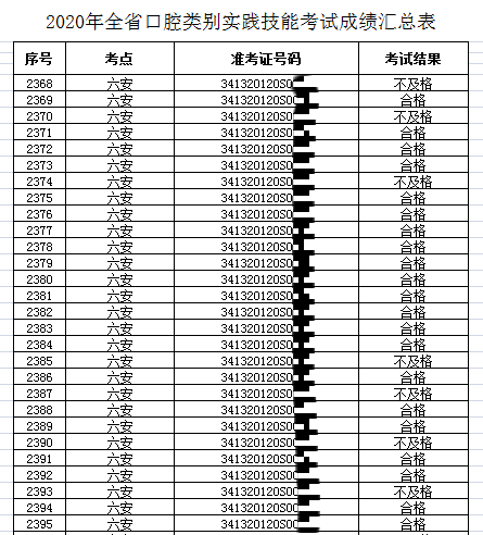 2020年口腔執(zhí)業(yè)醫(yī)師實(shí)踐技能考試六安市合格考生名單
