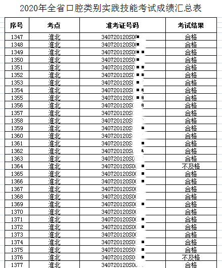 淮北市2020年口腔執(zhí)業(yè)醫(yī)師技能考試合格準考證號