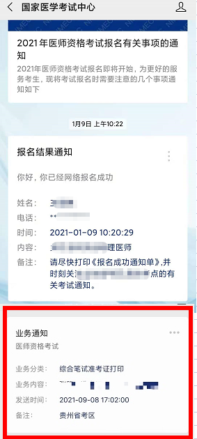 2.有些地區(qū)曾經(jīng)通過國(guó)家醫(yī)學(xué)考試中心公眾號(hào)推送過準(zhǔn)考證打印消息/相關(guān)報(bào)名消息,你收到了這個(gè)消息,證明你已經(jīng)綁定賬號(hào);