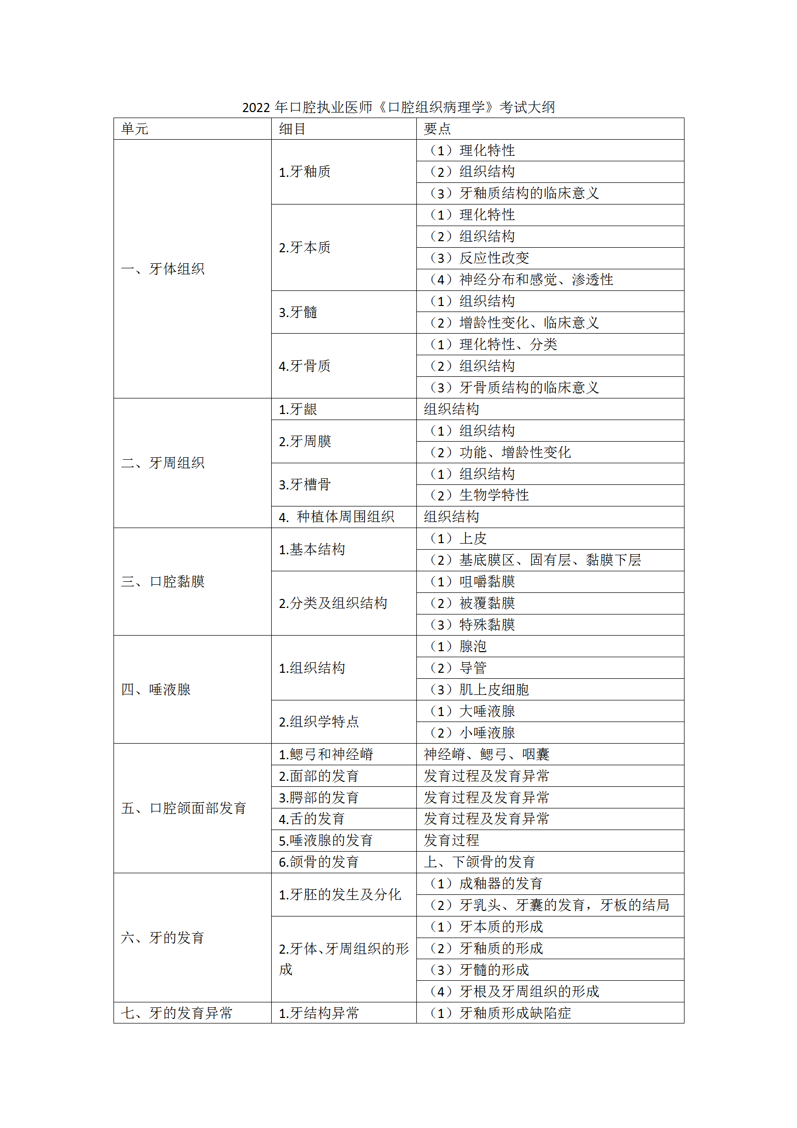 關(guān)于“2022年口腔執(zhí)業(yè)醫(yī)師《口腔組織病理學(xué)》考試大綱正式發(fā)布”,相信很多考生十分關(guān)注,醫(yī)學(xué)教育網(wǎng)編輯分享具體大綱內(nèi)容如下: