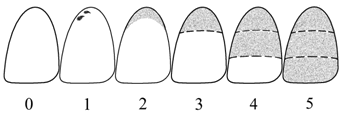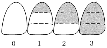 2=軟垢覆蓋面積占牙面1/3與2/3之間