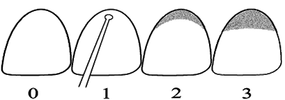 3=牙頸部菌斑覆蓋面積超過1mm,不足牙面1/3