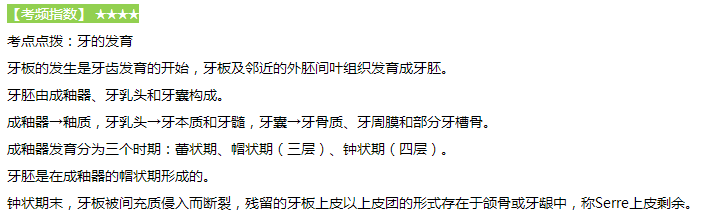 口腔執(zhí)業(yè)醫(yī)師《口腔組織病學(xué)》例題精選-牙的發(fā)育(附考點(diǎn)小結(jié))