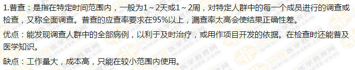 2.抽樣調(diào)查:為查明某病或某些疾病在某個(gè)國(guó)家或某個(gè)地區(qū)的現(xiàn)患情況或流行強(qiáng)度,大多使用抽樣調(diào)查的方法。前提條件是抽取的樣本數(shù)量足夠大,調(diào)查的數(shù)據(jù)可靠,這種調(diào)查方法的優(yōu)點(diǎn)為省時(shí)間、省勞力和省經(jīng)費(fèi),且所得資料同樣具有代表性。抽樣的方法有: