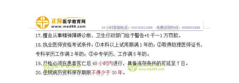 “2021年口腔執(zhí)業(yè)醫(yī)師筆試「衛(wèi)生法規(guī)」精編考點(diǎn)20條”的內(nèi)容由醫(yī)學(xué)教育網(wǎng)小編搜集整理,更多相關(guān)信息,敬請(qǐng)關(guān)注醫(yī)學(xué)教育網(wǎng)口腔執(zhí)業(yè)醫(yī)師輔導(dǎo)精華欄目。