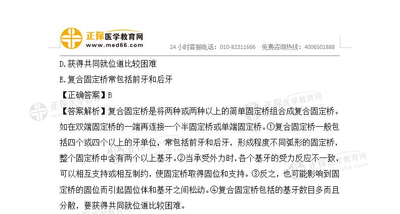 【答案解析】調(diào)整基牙間的分散程度:基牙越分散,各個固位體亦分散,各固位體間的相互制約作用增強,固位力增強。
