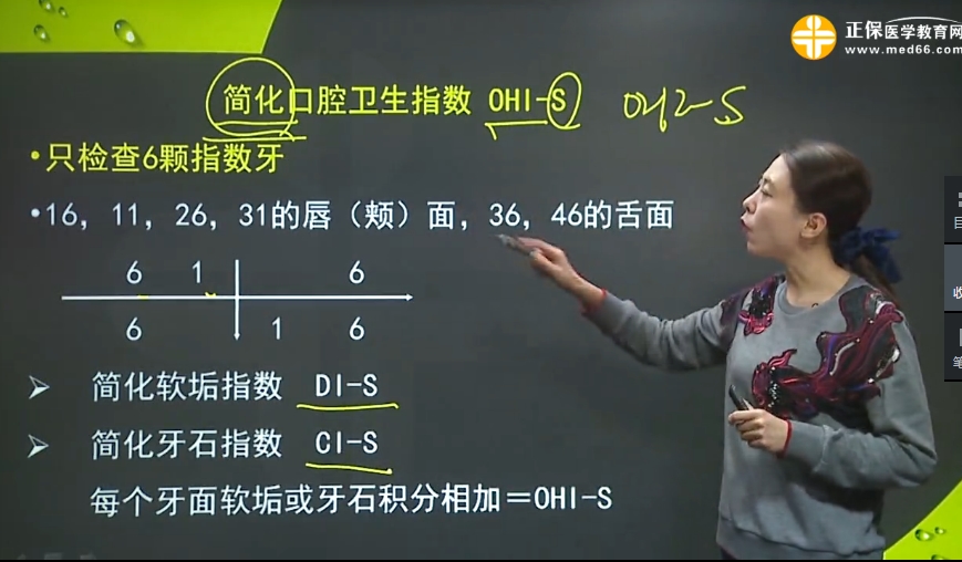 每個(gè)牙面軟垢或牙石積分相加=OHI-S