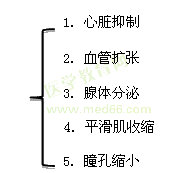 (1)縮瞳:激動(dòng)瞳孔括約肌M受體,瞳孔縮小。
