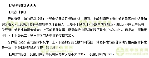 2.【答案及解析】B。上頜前牙向近中傾斜角度有大到小為231,下頜前牙則為321。
