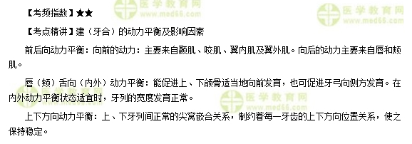 此內(nèi)容簡單了解即可,出題量較少。為幫助大家掌握相關(guān)考點(diǎn),下面將“口腔執(zhí)業(yè)醫(yī)師《口腔解剖生理學(xué)》章節(jié)考點(diǎn)輔導(dǎo):建(牙合)動力平衡”分享給大家,具體如下: