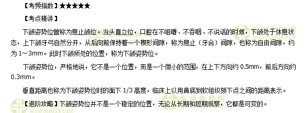 1.當頭直立位,口腔在不咀嚼、不吞咽、不說話時,下頜處于休息狀態(tài)時的位置是