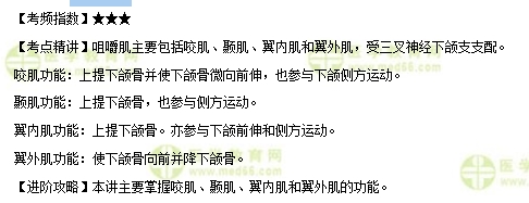 本講主要掌握咬肌、顳肌、翼內(nèi)肌和翼外肌的功能。下面將相關(guān)知識點及試題測試解析整理成文章“口腔執(zhí)業(yè)醫(yī)師考試知識點精講:咀嚼肌”分享如下: