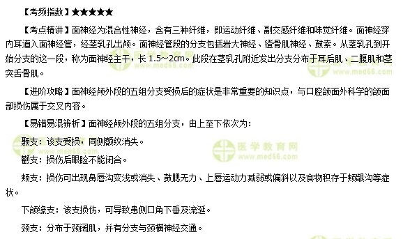 面神經(jīng)顱外段的五組分支受損后的癥狀是非常重要的知識(shí)點(diǎn),與口腔頜面外科學(xué)的頜面部損傷屬于交叉內(nèi)容。有關(guān)知識(shí)點(diǎn)整理為“面神經(jīng)分支、分布——口腔執(zhí)業(yè)醫(yī)師考試常見(jiàn)考點(diǎn)詳解”,如下: