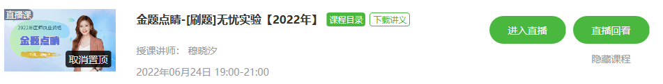 【醫(yī)學(xué)教育網(wǎng)原創(chuàng),轉(zhuǎn)載請(qǐng)注明出處】溫馨提示:未購(gòu)課用戶,可抓緊時(shí)間購(gòu)課哦,購(gòu)買(mǎi)無(wú)憂實(shí)驗(yàn)班/高效定制班均包含金題點(diǎn)睛直播課。點(diǎn)擊查看金題點(diǎn)睛直播課表>>。已購(gòu)買(mǎi)超值精品班的學(xué)員,可以通過(guò)補(bǔ)交差價(jià)升級(jí)班次哦,立即咨詢>>