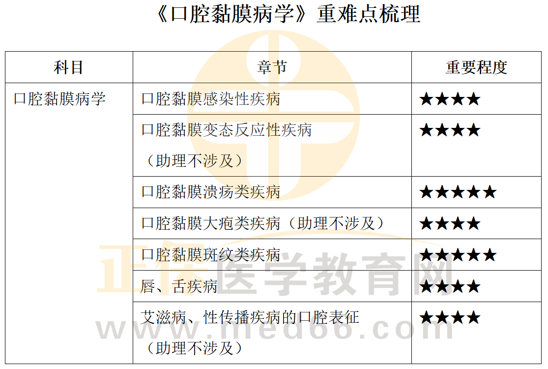 2022年口腔執(zhí)業(yè)醫(yī)師資格考試口腔黏膜病學(xué)各章節(jié)復(fù)習(xí)重點(diǎn)分布