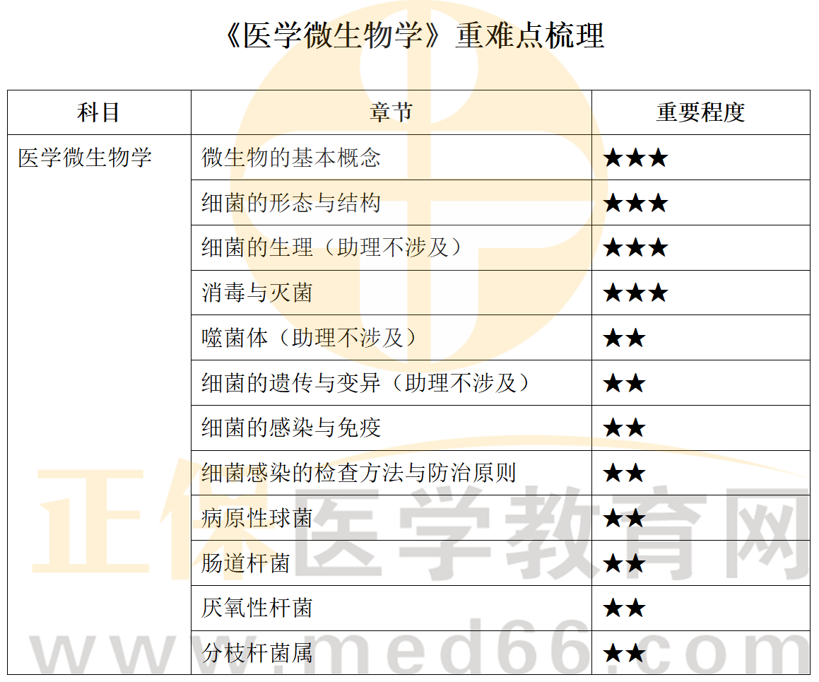 一表查看醫(yī)學(xué)微生物學(xué)星級重難點