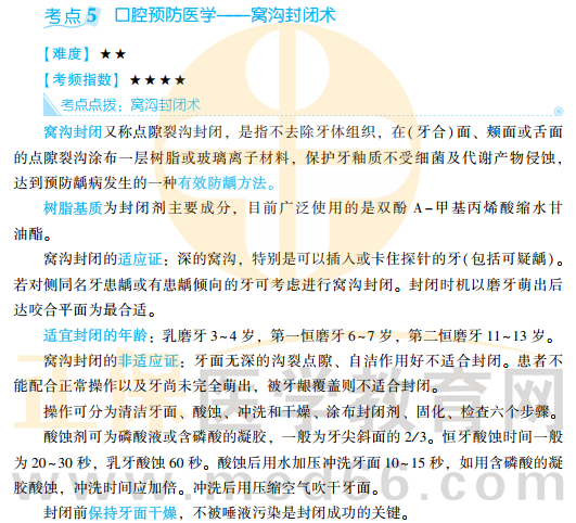 窩溝封閉術(shù)———2022年口腔預(yù)防醫(yī)學(xué)考前沖刺必會考點(含題)如下,2022年口腔執(zhí)業(yè)醫(yī)師考試復(fù)習(xí)如火如荼,你還沒有加入備考大軍嗎?立即開啟口腔執(zhí)業(yè)醫(yī)師考試精選考點的學(xué)習(xí)吧!