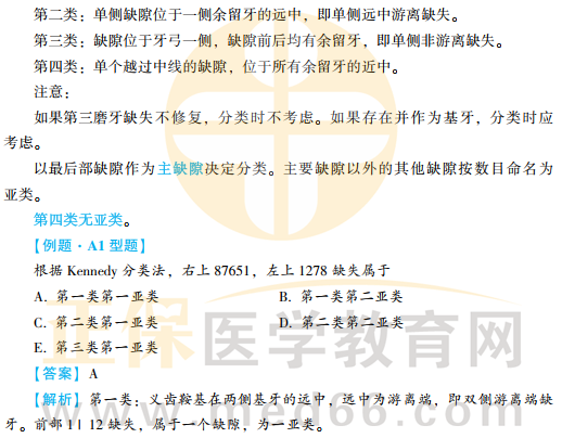 Kennedy分類——2022年口腔修復學考前沖刺必會考點(含題)如下,2022年口腔執(zhí)業(yè)醫(yī)師考試復習如火如荼,你還沒有加入備考大軍嗎?立即開啟口腔執(zhí)業(yè)醫(yī)師考試精選考點的學習吧!