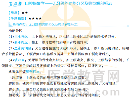 - · 無牙頜的功能分區(qū)及典型解剖標志-口腔執(zhí)業(yè)醫(yī)師筆試學霸筆記