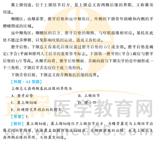 口腔修復學———無牙頜的功能分區(qū)及典型解剖標志