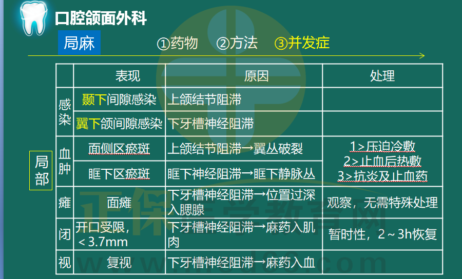 接下來我們將通過兩張圖片來詳細(xì)的描述局麻藥物并發(fā)癥。該部分內(nèi)容在每年考試中約占分值5~6分。所以千萬不要小看這兩張表格哦。