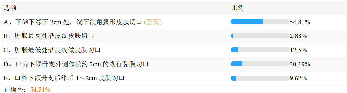 A.下頜下緣下2cm處,繞下頜角弧形皮膚切口