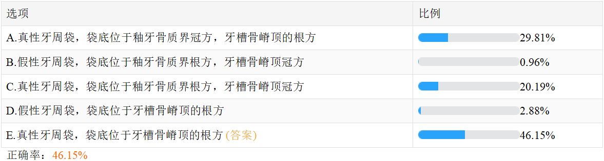 A.真性牙周袋,袋底位于釉牙骨質(zhì)界冠方,牙槽骨嵴頂?shù)母?nbsp;