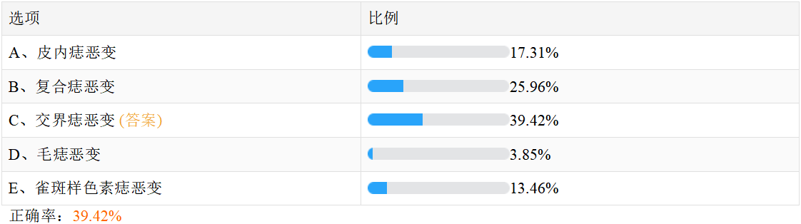 1.男性,60歲。右側鼻翼有1個深棕色結節(jié)7年。近2周出現(xiàn)疼痛并長大。檢查見:結節(jié)1cm大小,表面有破潰,深棕色,周圍皮膚出現(xiàn)多個黑色點狀小結節(jié)。最可能的臨床診斷為